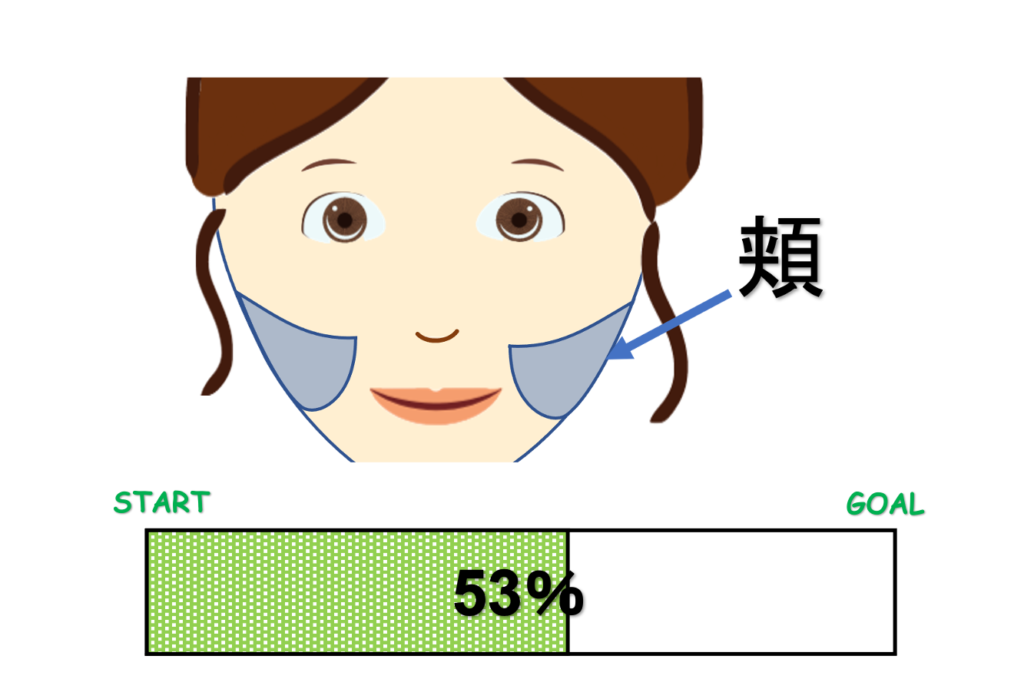 頬がヘコんでいるか、ふくらんでいるかで判断していただくと良いと思います。