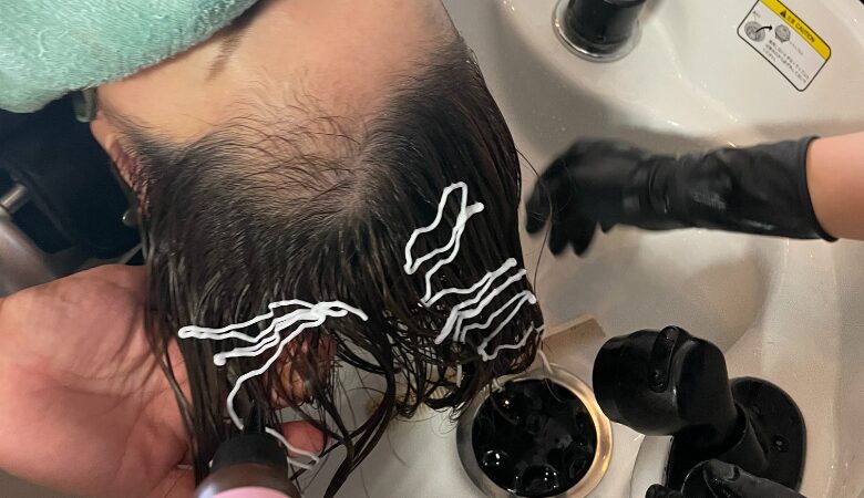 そして、実際にアカリさんの髪に髪質改善トリートメントを施しました。
